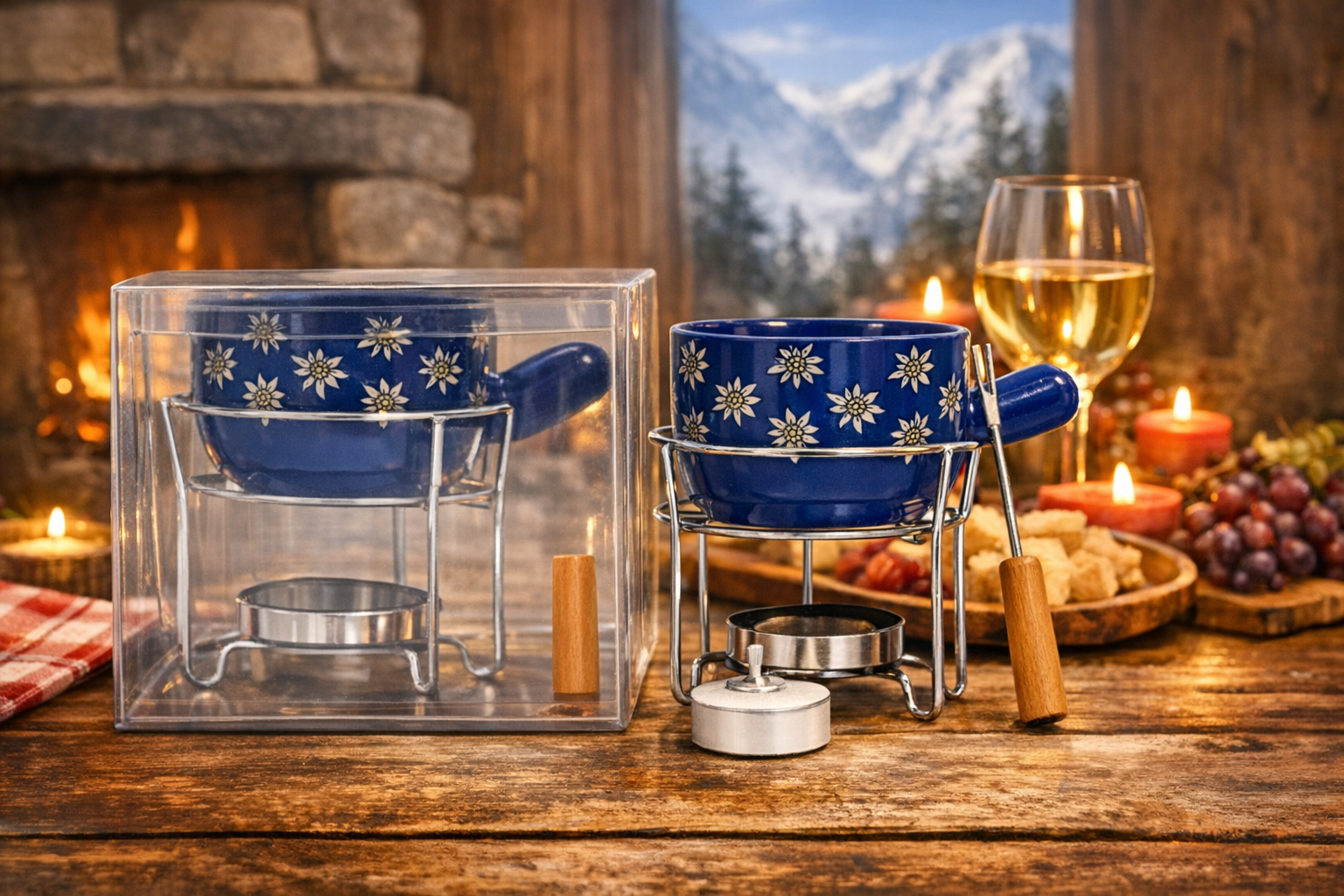 Minifondue blau Edelweiss